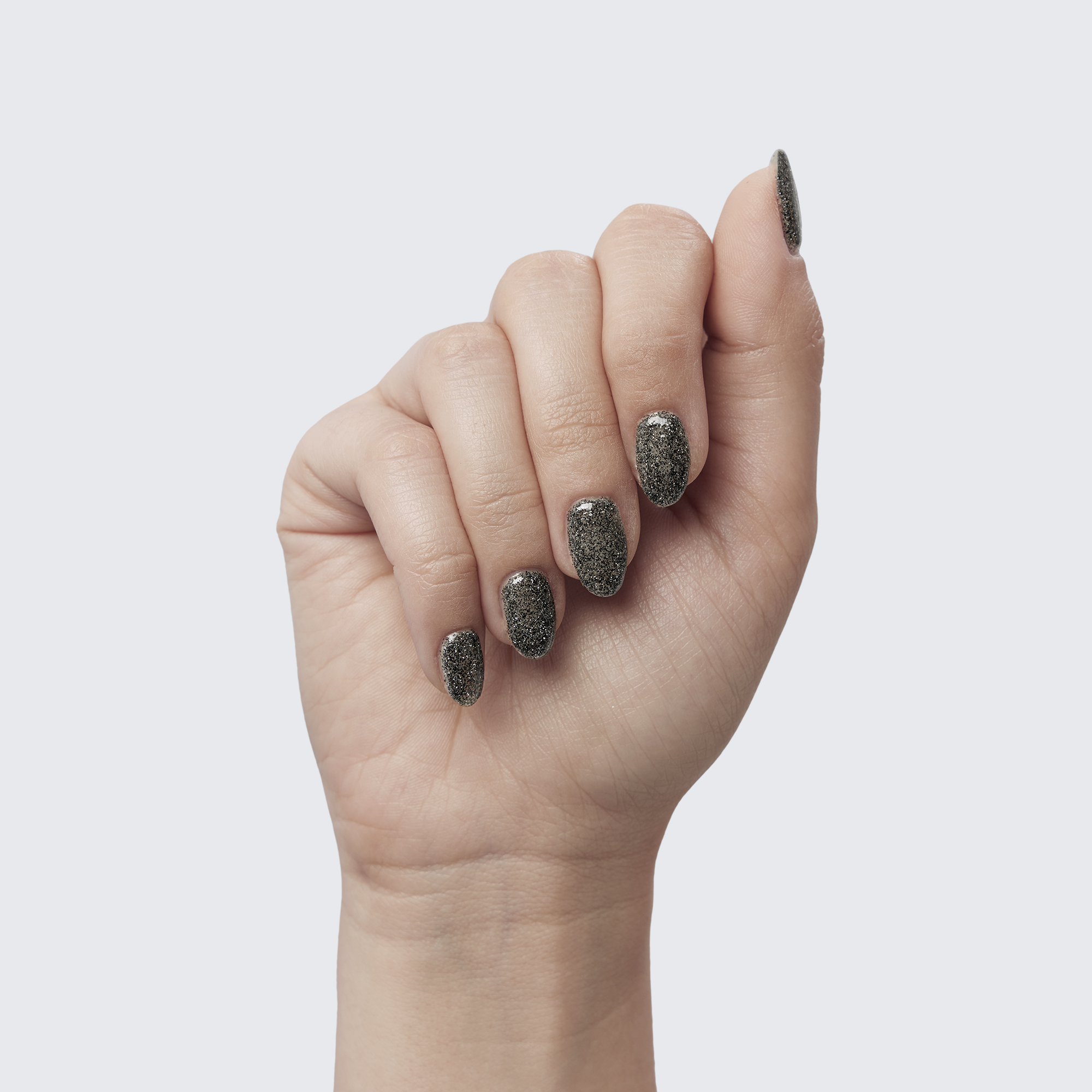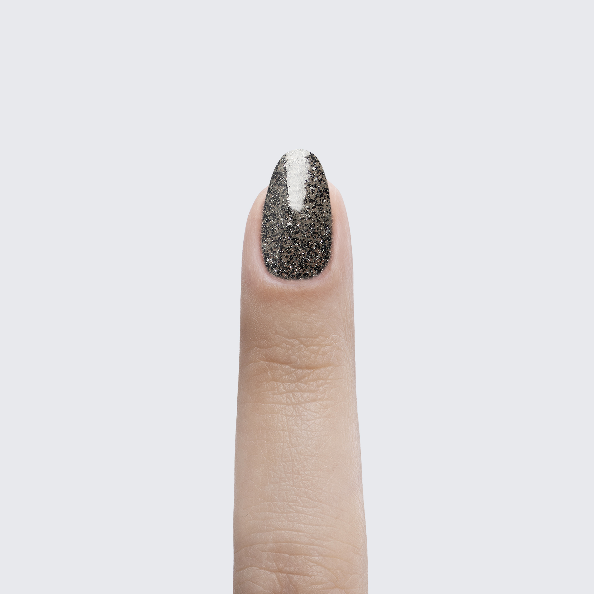 Black and silver shimmer in this discreet, translucent polish.